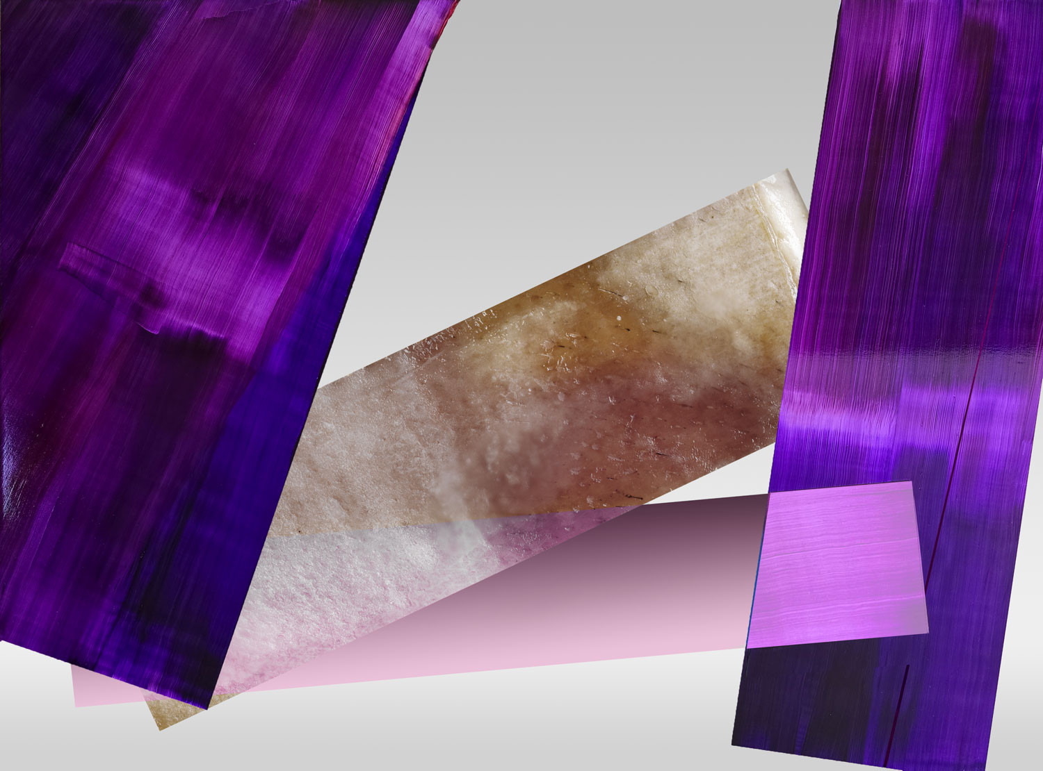 Öl auf Print, 67 x 100 cm, 2025Speck mit Violett