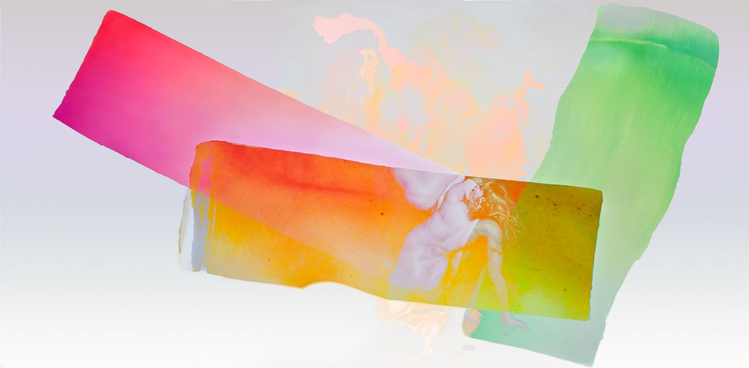 Öl auf Print, 57 x 130 cm, 2024Körper und Farbe
