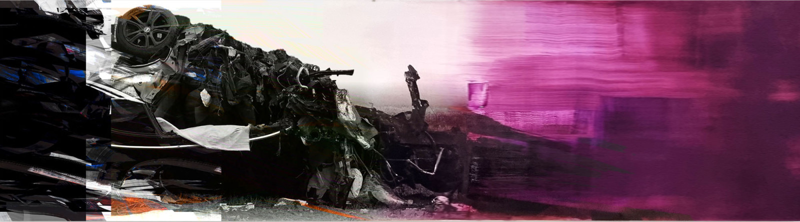 Öl auf Print, 37 x 135 cm, 2024Unfall